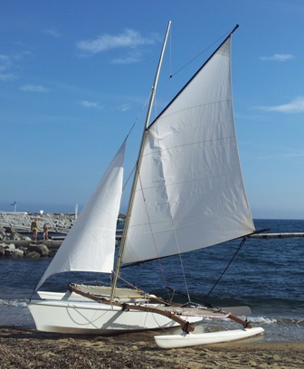 Projet éco-technologique. Concept associant la glisse de la pirogue à voile polynésienne et la stabilité des balanciers asymétriques type "hawaïens".